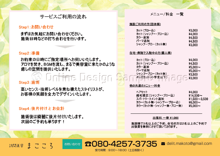 訪問美容まこころのチラシです!